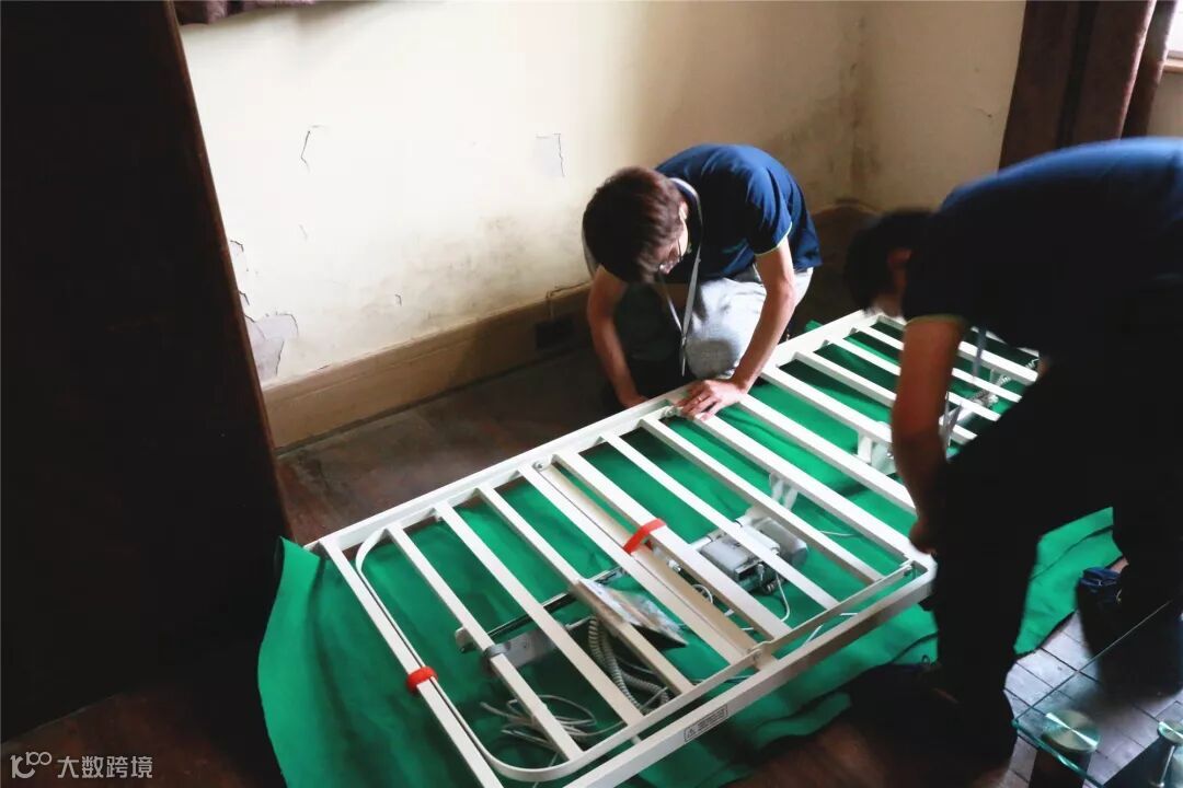 铺开绿布,拆开床的包装,一切就像是演练好的那般,两位师傅分工合作,在绿布上开始装床。工具箱里陈列着各种各样的工具,一个细小的螺丝钉都带着一份温情。在安床过程中,两位师傅几乎很少说话,周围的空气也渐渐变得安静。