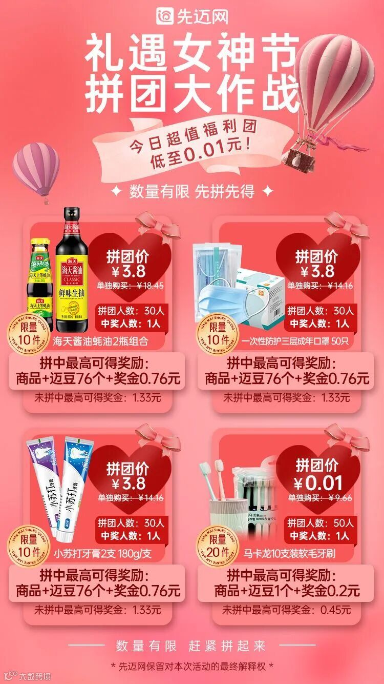 先迈网平台重磅推荐:拼团补贴商品