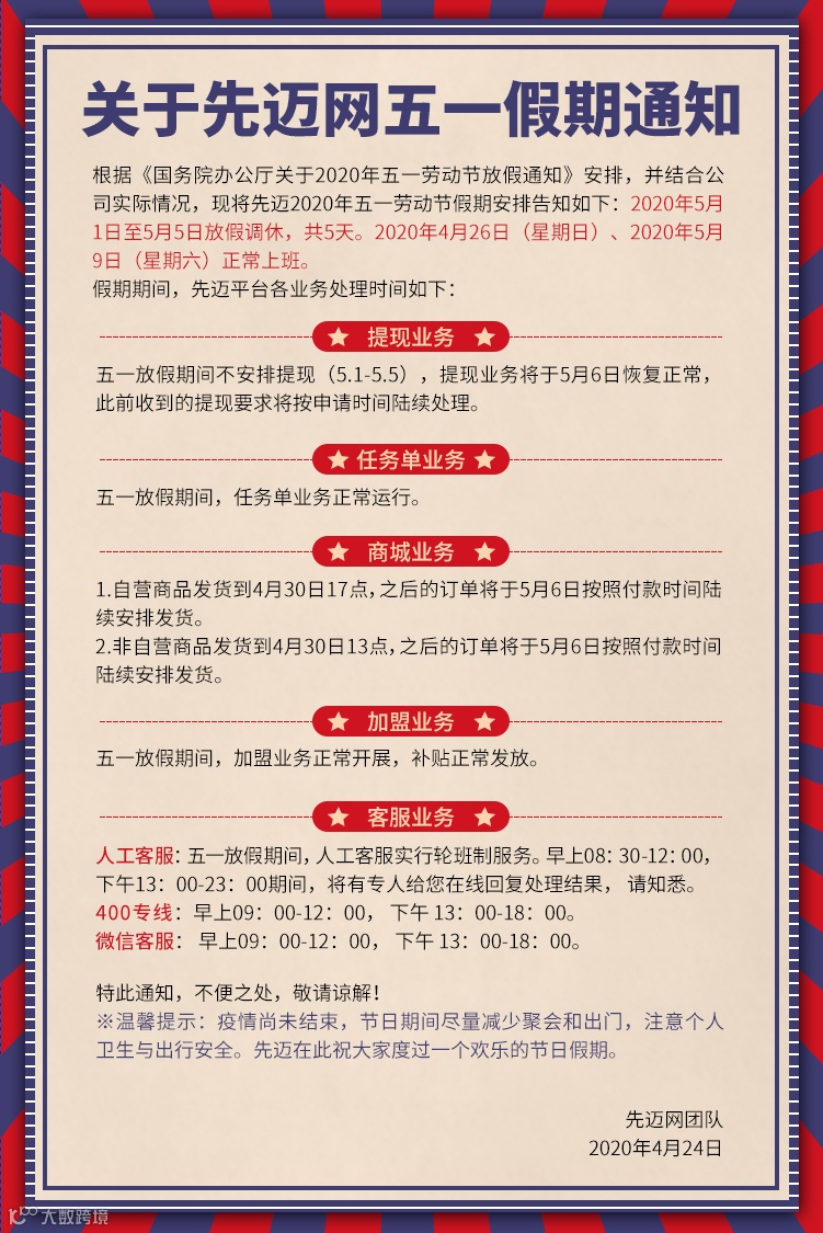 导读:恭祝所有先迈网用户“五一快乐,幸福安康!”