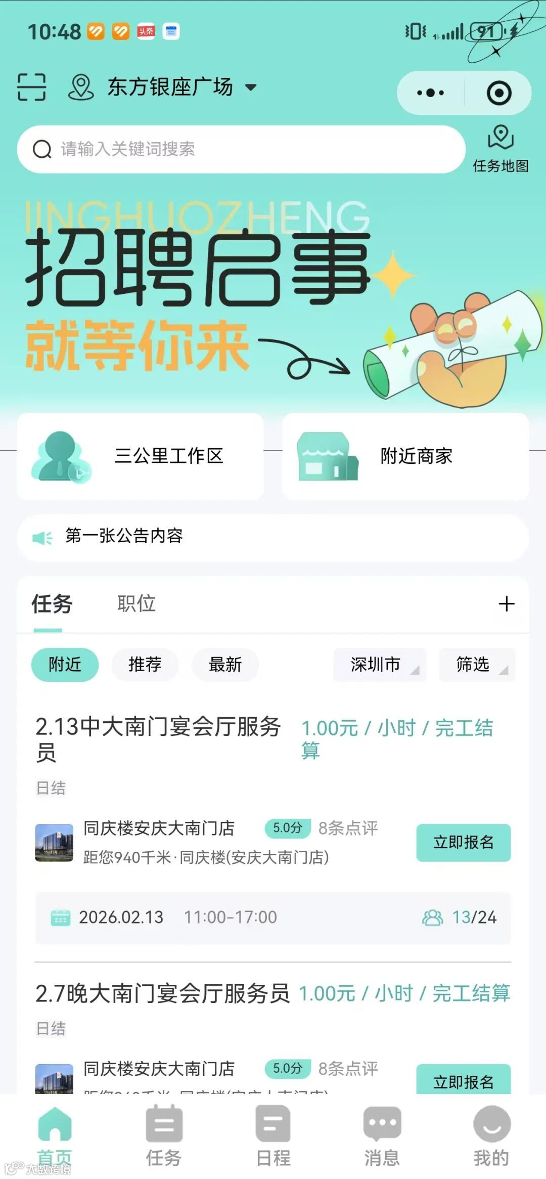 同庆楼不仅餐饮、食品、酒店多业态发展,旗下富茂大饭店主打宴会酒店,针对人力密集型的服务行业,开发了一套“灵活挣”的灵活用工小程序平台,开放给全行业使用。