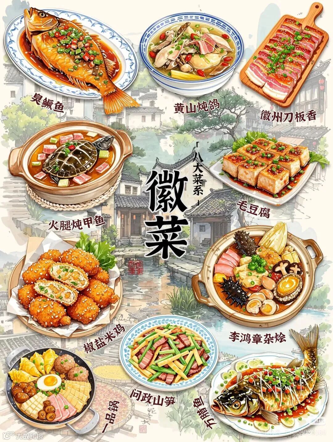 经典徽菜:以臭鳜鱼、胡适一品锅等为代表,讲究火功、底蕴深厚。这些菜不仅是美食,更是承载着徽商文化、礼仪传统的“可品尝的故事”。