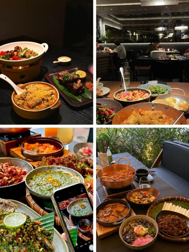 云贵菜:主打蜡染布艺、藤编家具、大量绿植、洞穴风墙面,营造西南秘境山林感;