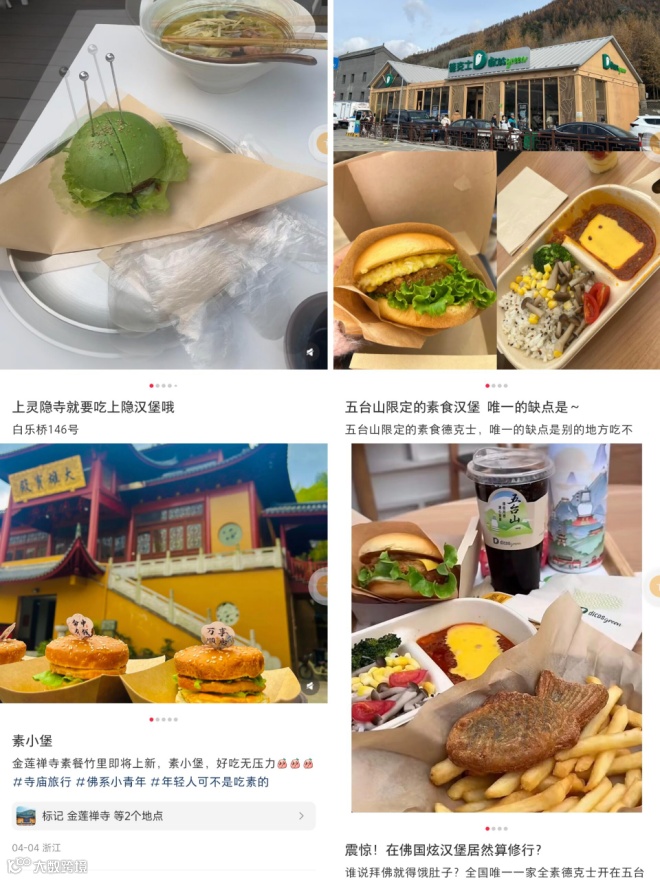 科技与宗教的融合藏在研发细节里:杭州某寺庙联合食品实验室开发 “零胆固醇素肉饼”,蛋白质含量比真肉饼高 15%;五台山德克士的 “植养牛若堡” 用青稞粉制作面包胚,60 元的单价仍供不应求,游客戏称其为 “佛光普照的汉堡”。