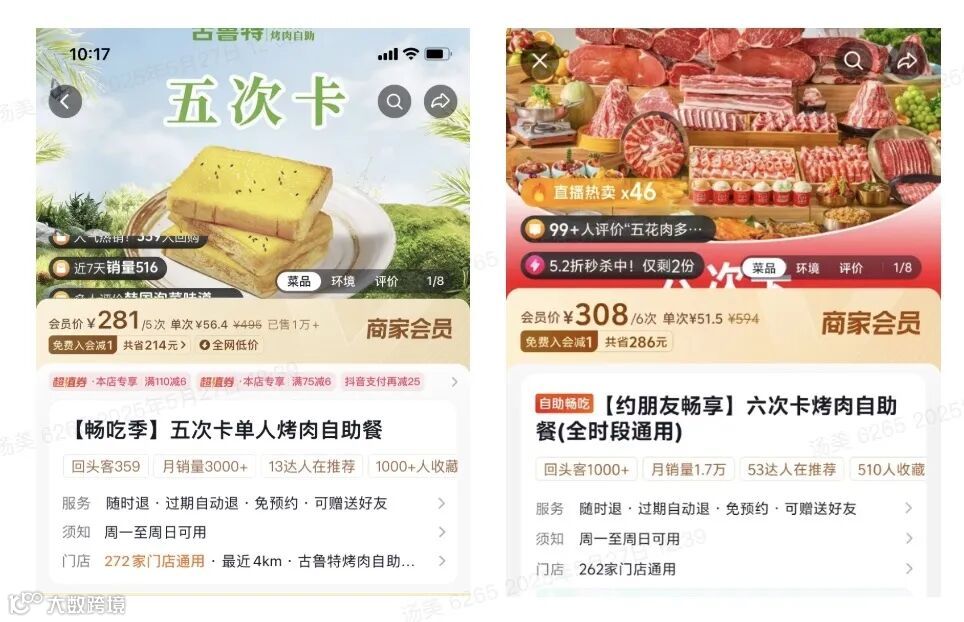 同时,配合品牌上新的次卡套餐等,比如畅吃5次卡、6次卡、8次卡等,实现对目标客群的“提前锁定”。据古鲁特品牌营销负责人介绍,仅刀小刀的单场直播,曝光量就高达1,100万,为品牌后续持续曝光奠定了热度基础。