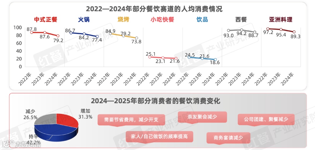 但另一方面,2024年人均餐饮消费已降至39.8元,消费支出增加的消费者占比从50%骤降至31.3%。这种“规模扩张”与“利润收缩”的剪刀差,正在将行业推向深水区。