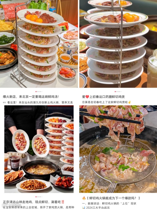 近期,一批主打“鲜切”的鸡肉火锅热度持续飙升。仅小红书上,“鲜切鸡肉火锅”相关笔记就高达39万 + 篇。