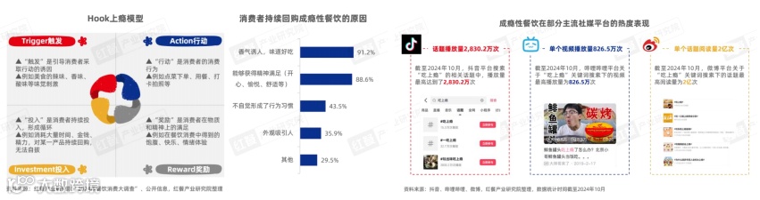 “成瘾性餐饮”坐拥过亿流量:成瘾性餐饮凭借多感官刺激,近年来在社交媒体上的热度居高不下。