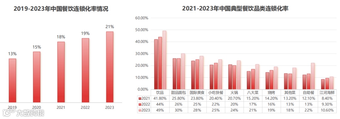 2023年,我国餐饮连锁化率为21%,较上年提升2个百分点,餐饮门店连锁化率创新高。