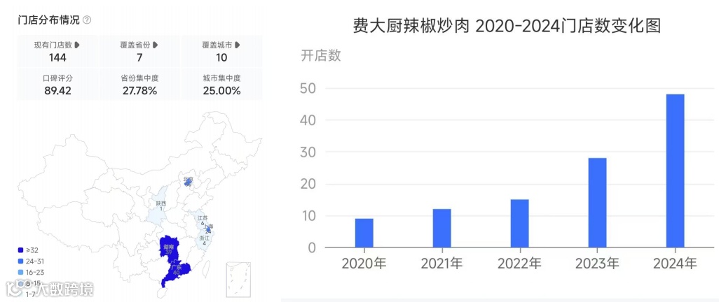 数据显示,截至2024年12月,费大厨门店总数达到144家,2024年新增门店48家,品牌规模化发展速度实现行业领跑。