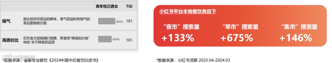 《2024小红书餐饮行业方法论报告》指出,早市、夜市、地摊等集市场景成为年轻消费者餐饮消费的新潮流,也成为除了门店之外,品牌与消费者沟通、构建起差异化竞争优势的重要场所。