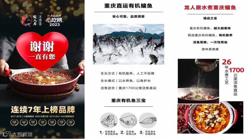 龙人居水煮鱼连续七年获得大众点评必吃榜,成为京城餐饮品牌的人气王、排队王,被誉为“京城水煮鱼的天花板”。