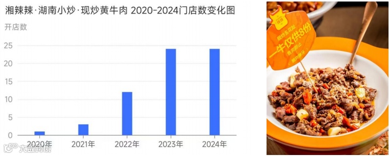 湘辣辣成立于2014年,客单价格80元左右。湘辣辣以“小炒黄牛肉”为招牌产品,通过融入潮汕火锅牛肉分部位的做法,精选良种黄牛肉,选用“吊龙”“嫩肉”“五花趾”3个不同部位,强化小炒黄牛肉的专业性和价值感。
