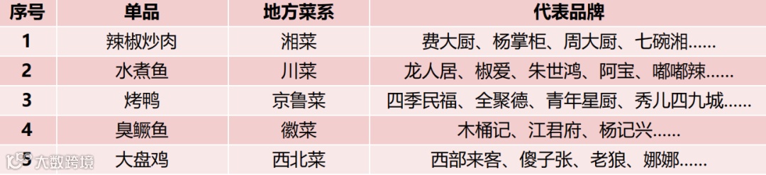 “单品+菜系”模式代表单品及品牌