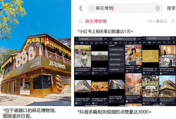 2023年5月1日,麻花博物馆一开馆,就晋升为网红打卡地。目前,小红书上相关笔记数量达1万+,抖音多篇相关视频的点赞量达3000+。