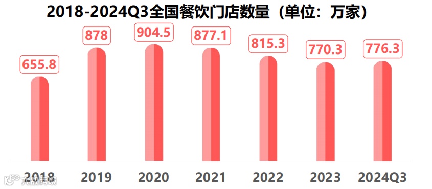 自2020年开始,全国餐饮门店数量整体呈下降趋势,餐饮门店数量规模高速扩张的时代不再。