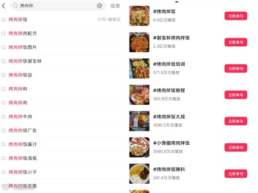 抖音上,烤肉拌饭相关话题播放量高达7亿;小红书上,关于烤肉拌饭的种草笔记多达30余万篇。这一数据充分显示出消费者对烤肉拌饭的高度关注与喜爱。