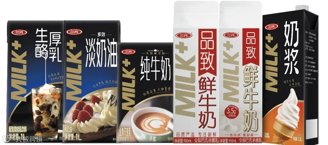 三元在餐饮端的产品线非常丰富:奶酪、低温鲜奶、常温奶、淡奶油、厚乳、调制乳、酸奶等,可以满足客户多样化的需求。