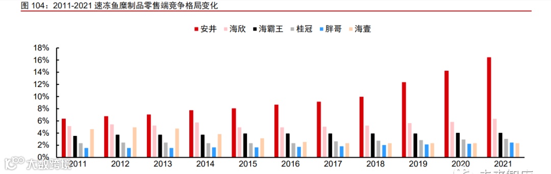 以零售端速冻鱼糜制品为例,安井食品市占率从 2012 年 6.8%提升至 2017 年 9.2%,2021 年进一步提升至 16.5%。2017 年公 司成功实现上市后,继续从多维发力增强其综合实力,盈利能力同步增长。主要举措包括: