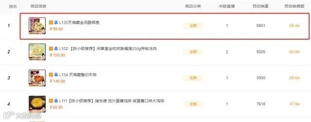 无独有偶,去年3月10日,一款单价99.8元的“金汤酸菜鱼”出现在快手平台@陈小硕 的直播间。