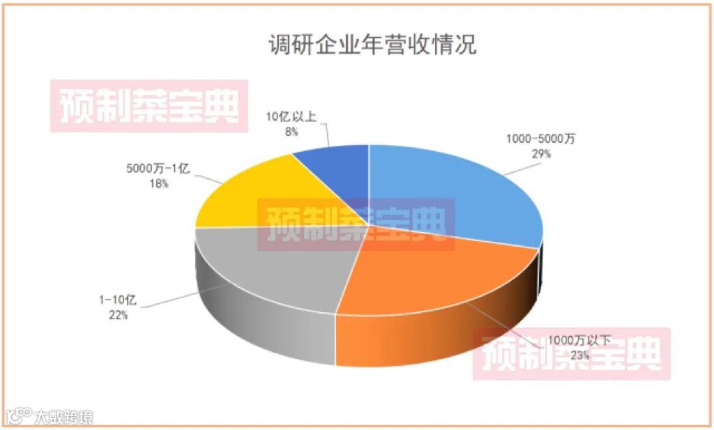 调研数据显示,当前70%的广东畜禽预制菜企业年总营收在1亿元以下。可见,广东畜禽预制菜企业中,中小型企业数量居多。