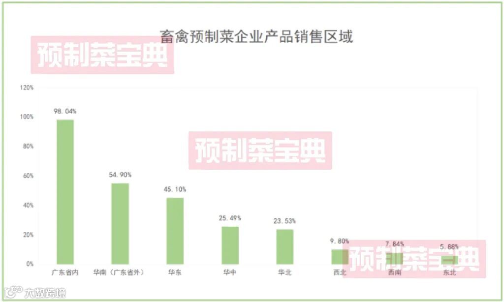 据调研统计,目前广东各大畜禽预制菜企业的产品主要销往华南地区,且广东是最重要的市场。