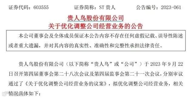 9月22日晚间,“鞋王”贵人鸟发布公告称,将以粮食业务作为公司未来的主营发展方向,要优先、重点做大做强粮食业务,并逐步退出运动鞋服业务。