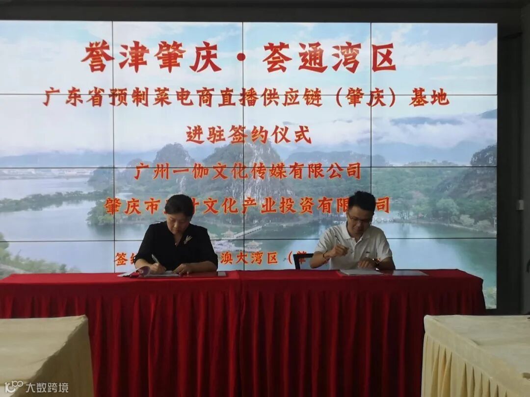 5月4日下午,广州一伽文化传媒有限公司在粤港澳大湾区(肇庆)旅游港,与旅游港运营商肇庆五叶文化公司举行签约仪式,正式进驻该旅游港中的广东预制菜电商直播供应链(肇庆)基地。该直播基地目前拥有42个直播间,将于7月6日整体开业。