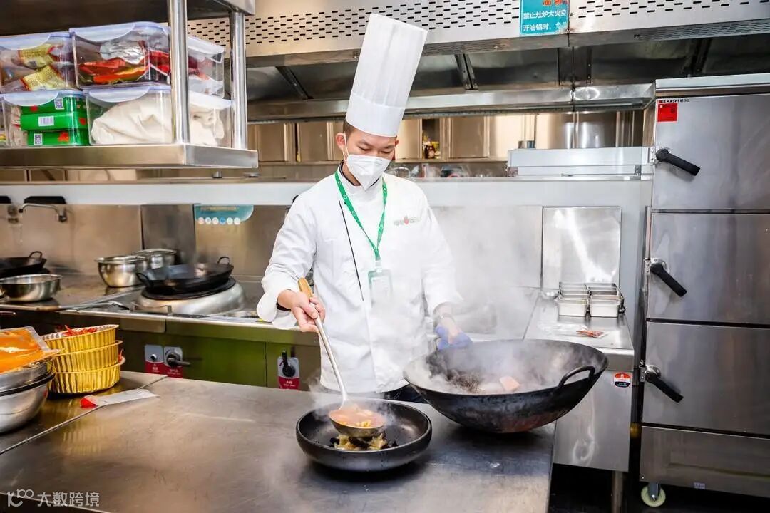 穿上白色的工作服,戴上象征主厨的厨师帽,走进熟悉的厨房炮台,田林开启了一天的工作。