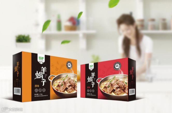 因此,部分品牌在羊蝎子产品包装上加入了京剧脸谱的形象,比如食缘卤遇老北京羊蝎子、私享草原原汤火锅羊蝎子、莫小小莫原汤火锅羊蝎子等产品,文化特色浓郁的设计,既能勾起人们对老北京羊蝎子的情怀,还能加深人们对品牌的认知,一举多得。