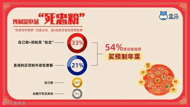 今年春节,“在家吃年夜饭”仍是主流。盒马通过市场调研发现,有5成以上的用户会使用预制菜,在北京、上海等追求快节奏的一二线城市,预制菜的“上桌率”更高。