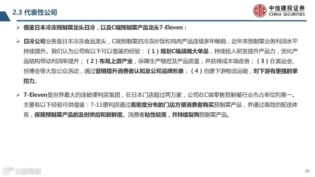 此外,日本的连锁便利店企业7-Eleven也凭借高效的配送供应体系来满足客户对便 当等预制菜的高频采购需求。