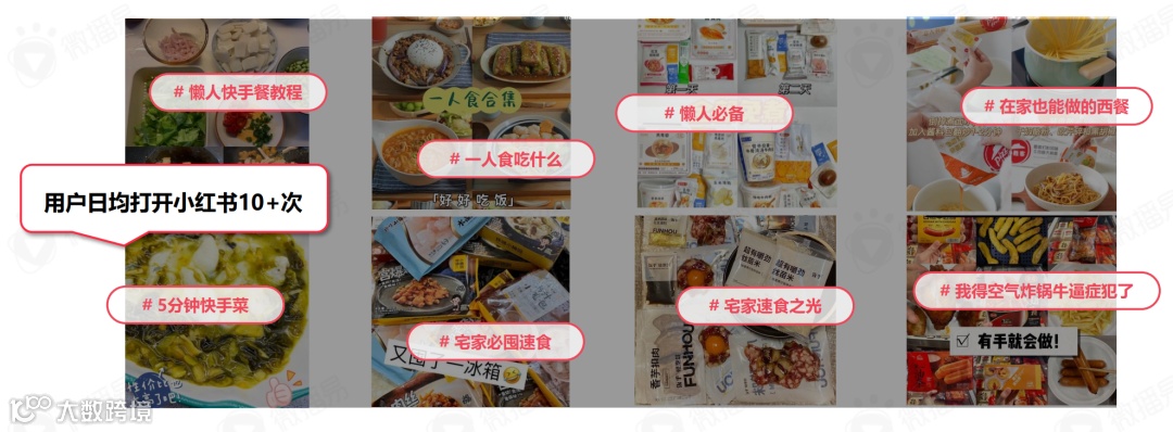 围绕速食评测、懒人快手菜教程、一人食吃什么、空气炸锅的一百种使用方法等生活场景内容在小红书占据着巨大的笔记体量,影响着人们的日常生活和社交方式。