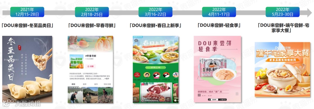 其中,抖音电商生鲜营销IP「DOU来尝鲜」持续策划主题营销活动,以节气、季节、节日发散主题,为预制菜开辟生意新思路。