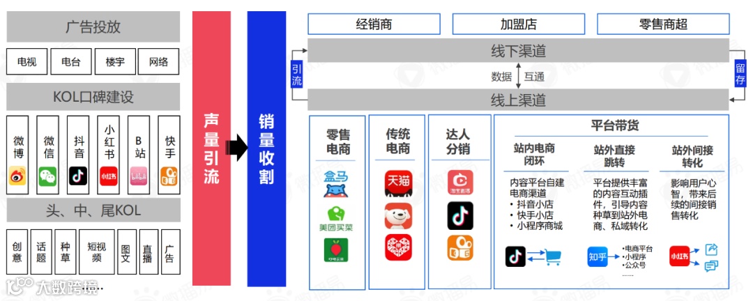 目前,从声量引流到销量收割,从广告投放、KOL口碑种草到线上线下全渠道转化,实现从“营”到“销”的闭环链路已经成为品牌渠道建设的共识。