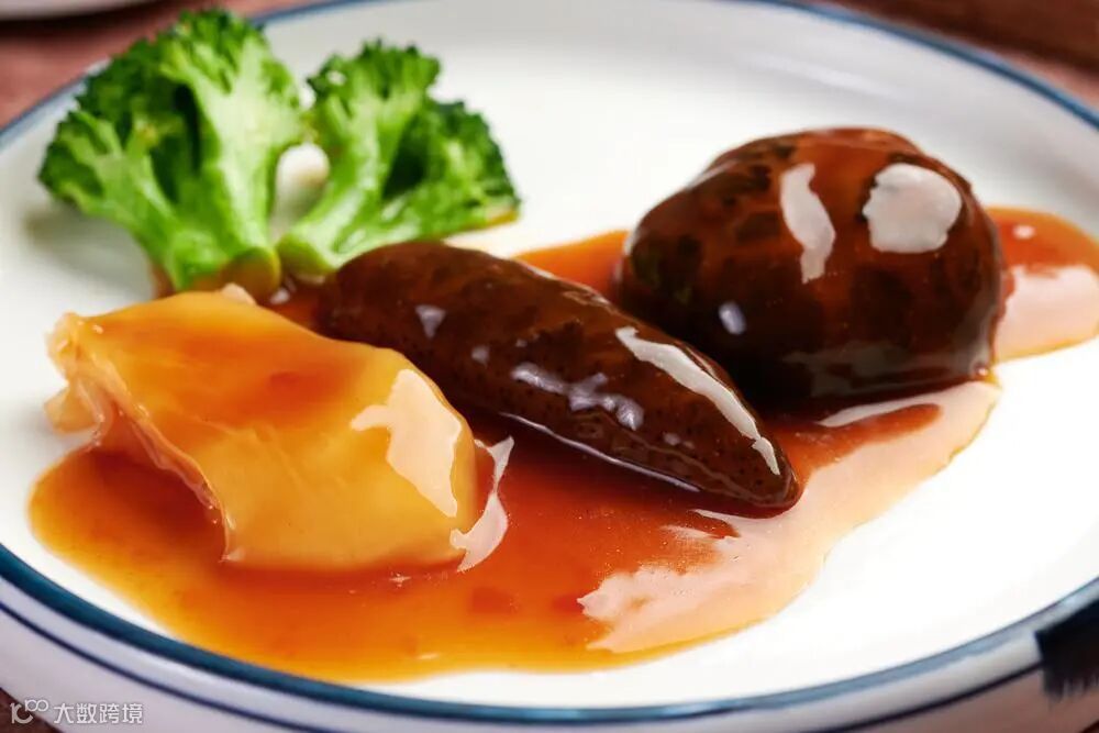 花胶润滑爽口弹牙;海参肉质鲜嫩,味道鲜美,熬制好的鲍汁淋在三宝面上,口感丰富,成就美味三宝!