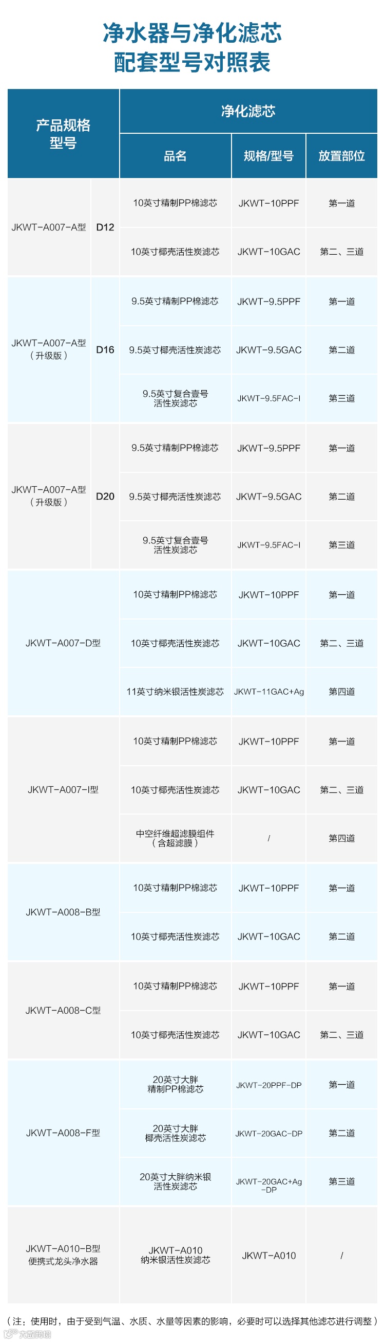 滤芯的配套型号与更换时长