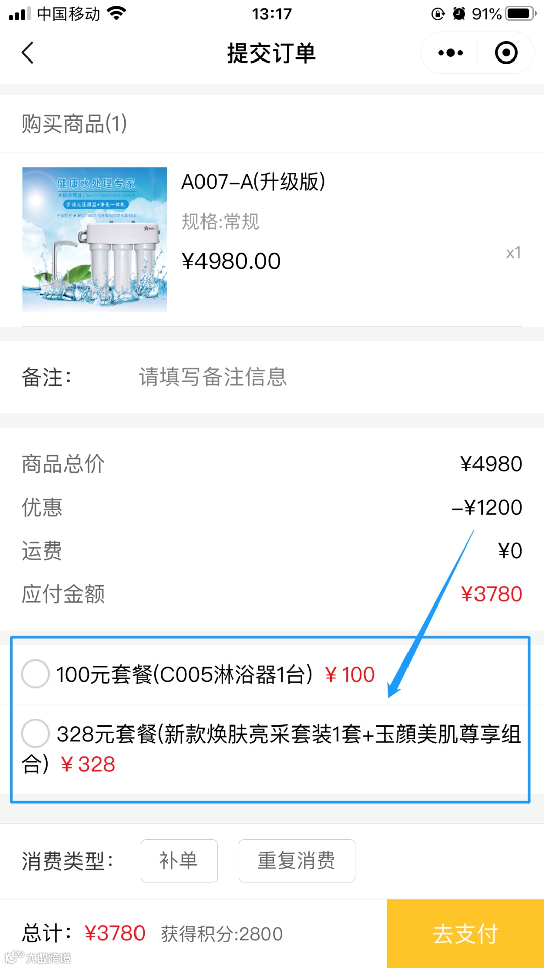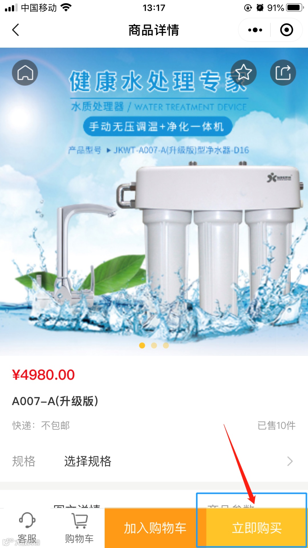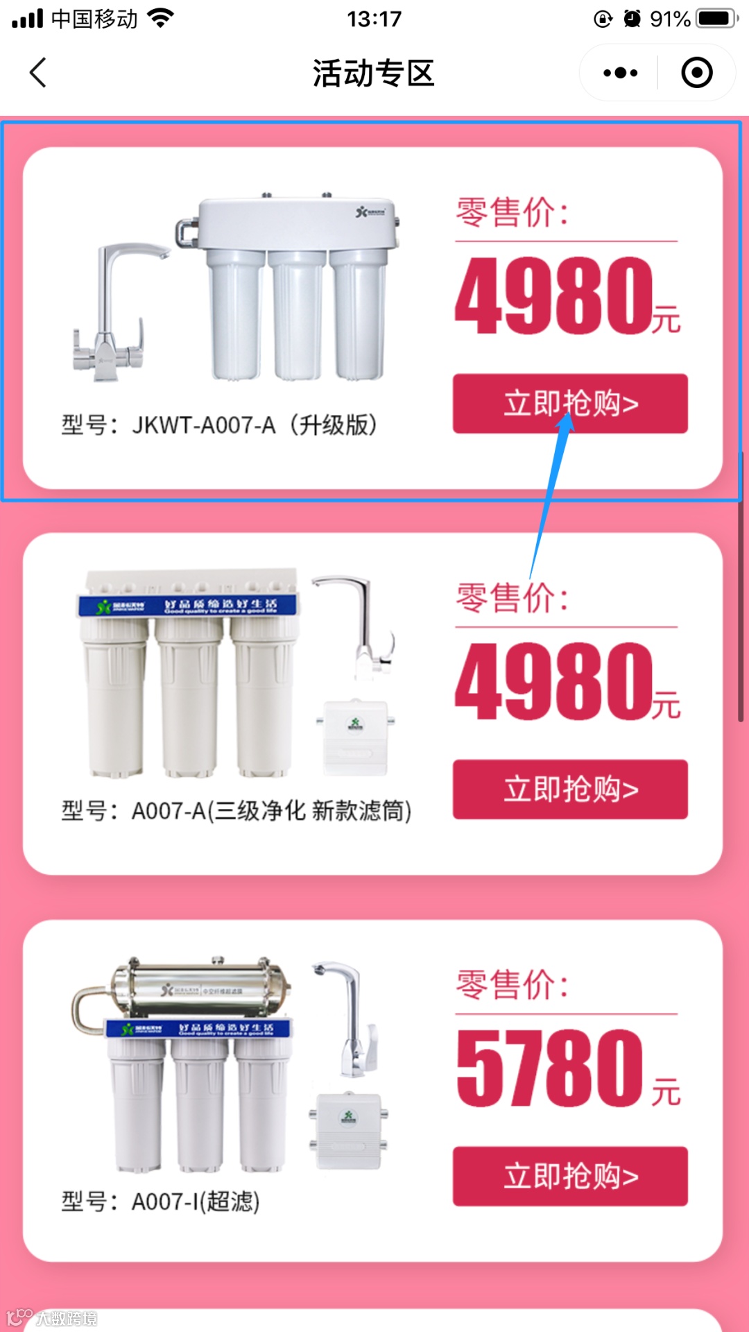 首先,进入活动会场,选择购买一款净水器:
