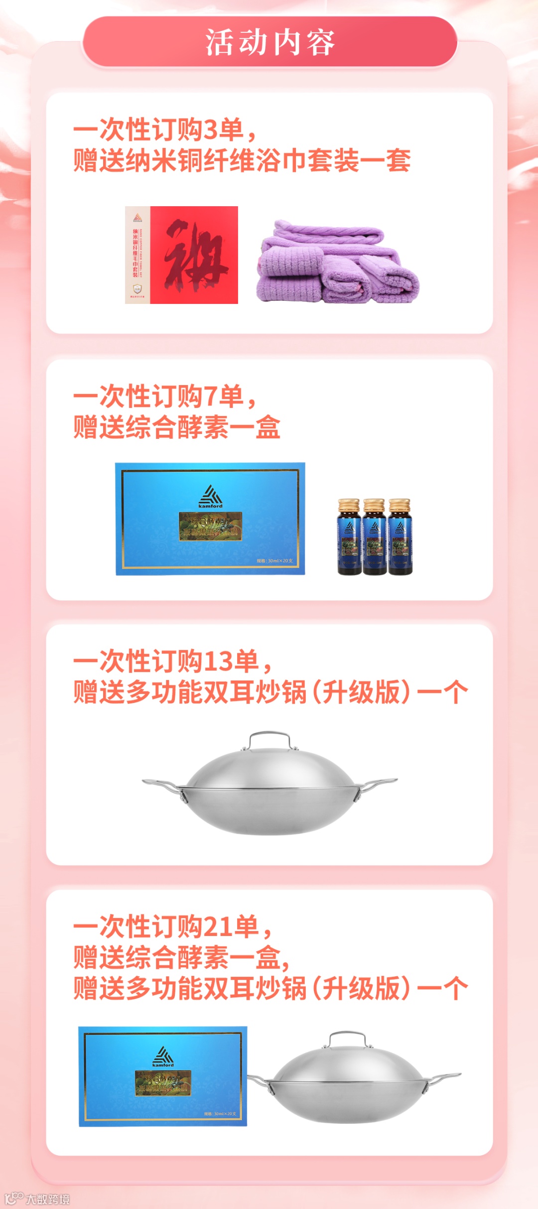④一次性订购21单,赠送【多功能双耳炒锅(升级版)】*1个+【综合酵素】*1盒。