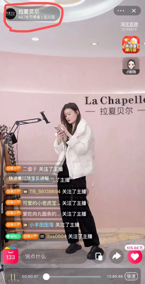 数据显示,淘宝“拉夏贝尔官方旗舰店”11月25日的直播观看量超