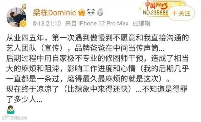 从品牌方到商务拍摄,从台前到幕后,都在吐槽他和他的团队