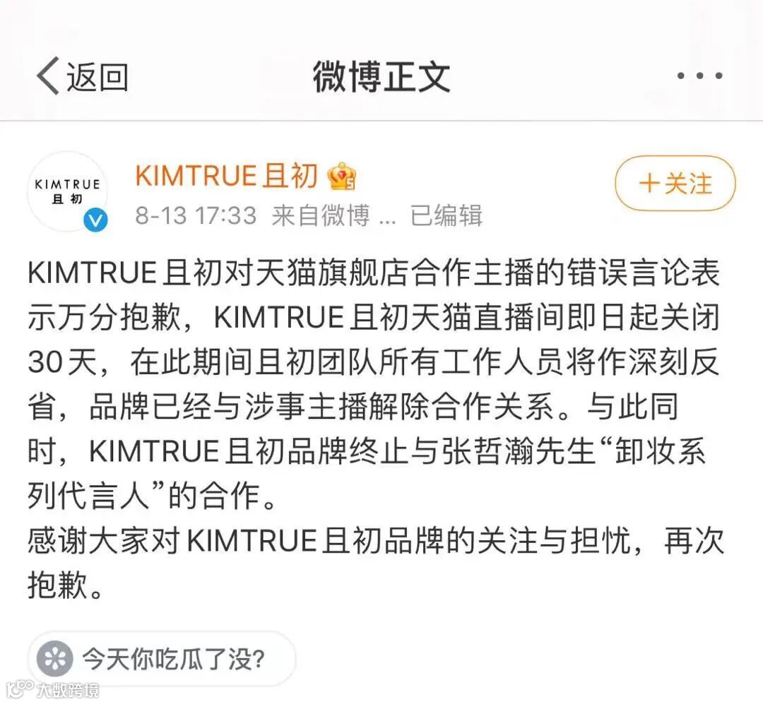 更有品牌为表诚意,宣布品牌直播间关闭30天,涉事主播解除合作关系。