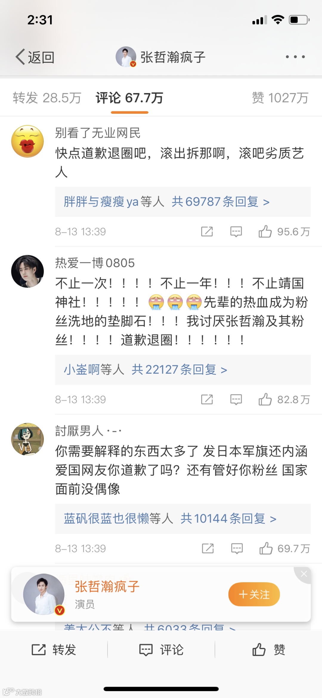 在道歉声明下,要求其退圈的评论高达