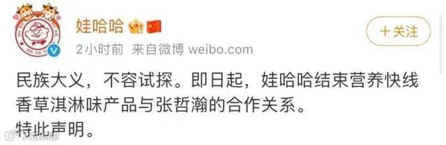 风波发酵后续影响依然不断,首当其冲的就是商务代言,张哲瀚代言的娃哈哈品牌第一个发声明解除合作,随后共20多个相关品牌一一发声宣布终止合作。