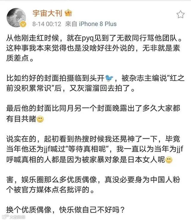 身为一个公众人物,全然失去了一个作为偶像与榜样的模样,如今粉丝疯狂洗地辩解,已经让追星失去了意义和价值。