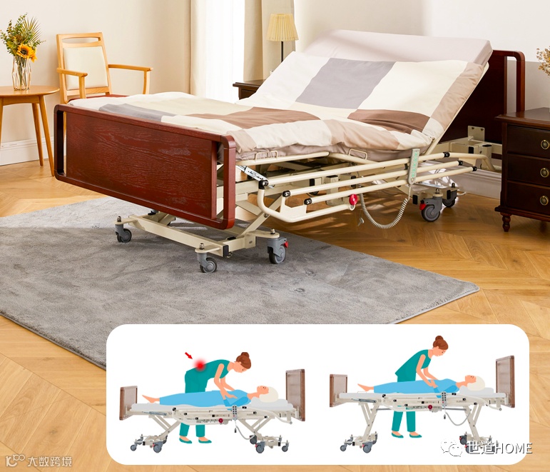 就拿世道这款豪华五功能的L系列护理床来说吧,它具有背部升降、腿部升降、整床升降、前倾和后倾五项功能。那这些功能分别能起到什么作用呢?