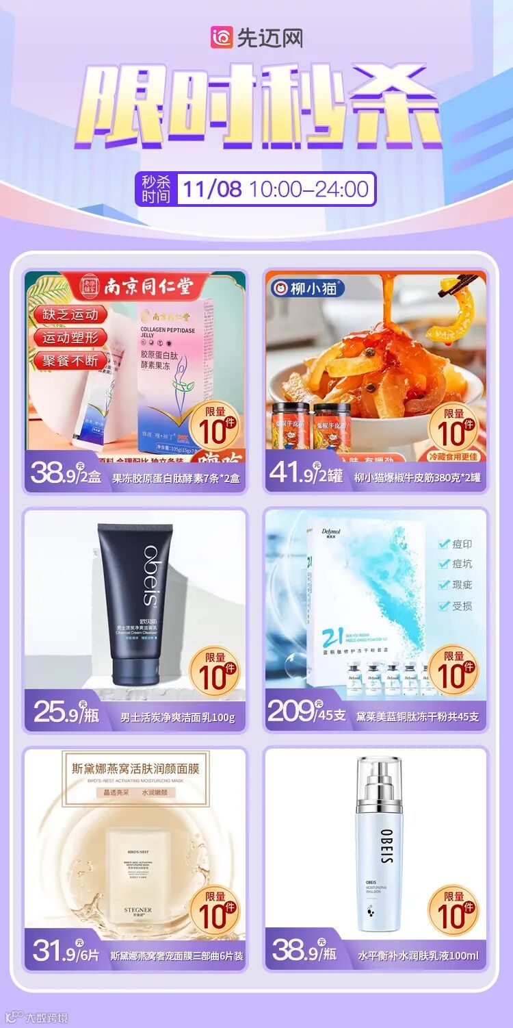 进入先迈网小程序秒杀专区即可抢购!