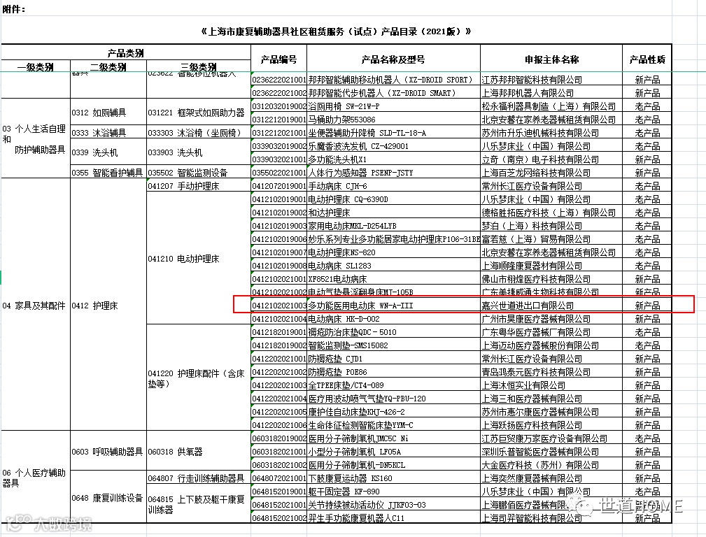 【喜报】世道多功能医用电动床入选《上海市康复辅助器具社区租赁(试点)产品供应商及产品目录(2021版)》