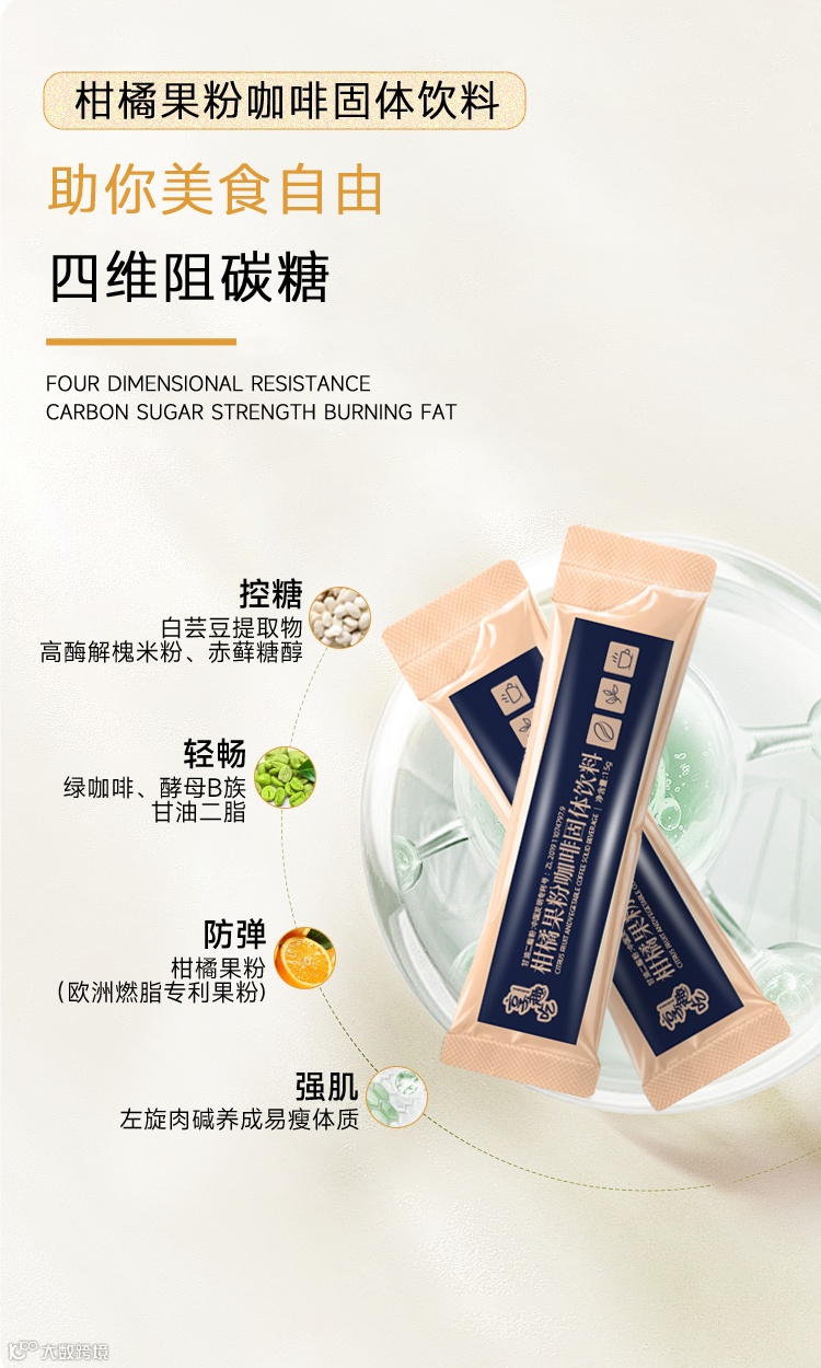 享趣吃柑橘果粉咖啡固体饮料是一款专为健康纤体设计的创新饮品,融合了三大控糖因子、甘油二脂、柑橘果粉及左旋肉碱等多种优质成分。