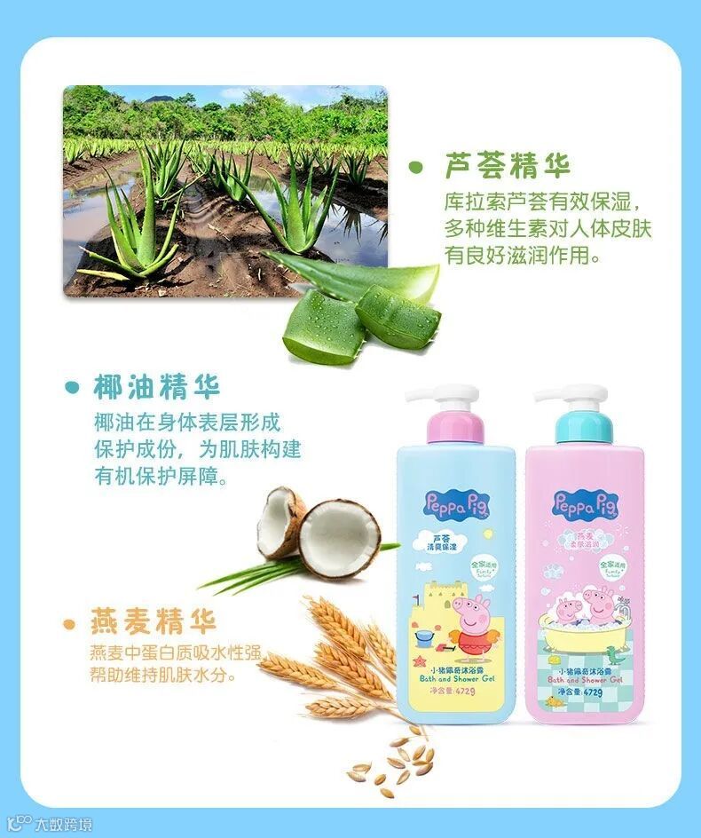 为了保证沐浴露温和有效的清洁力,小猪佩奇选用的是天然椰油精华。