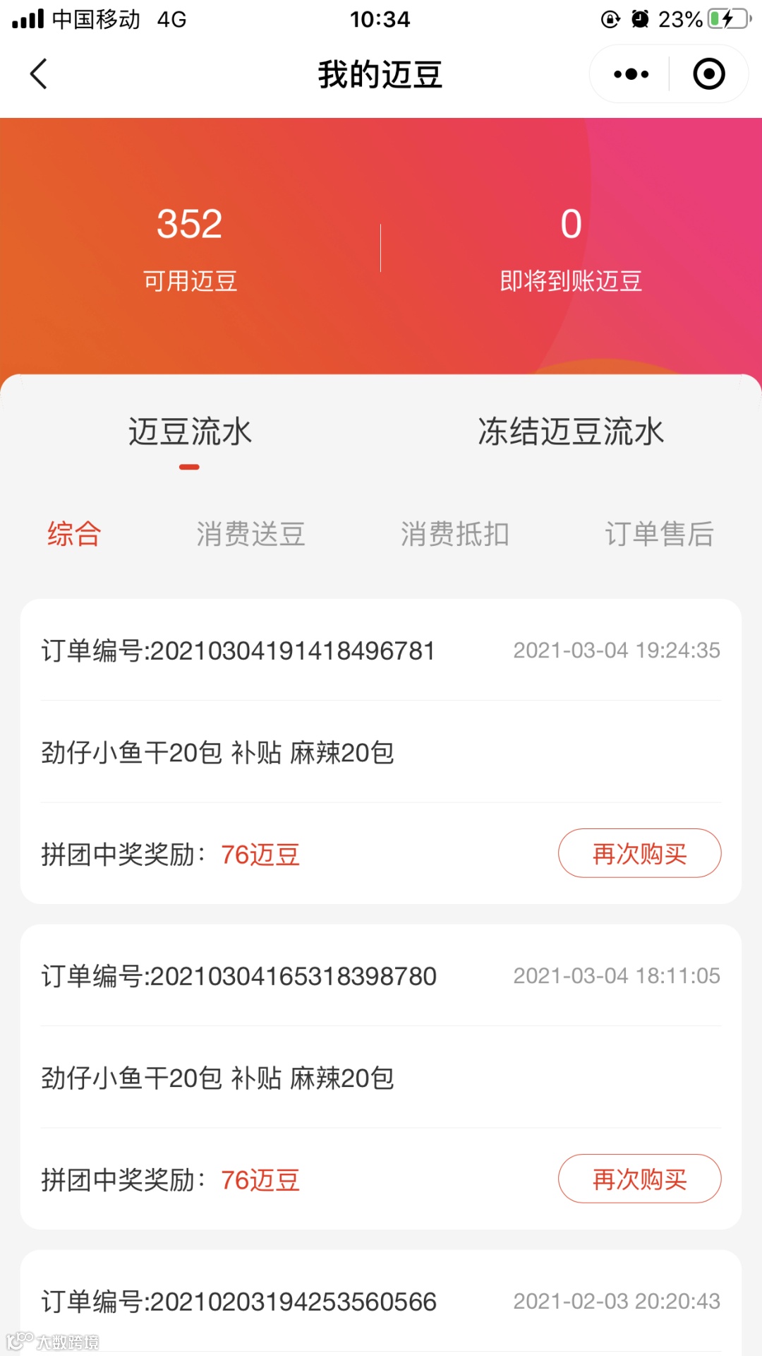 开团/参团,拼中可以用优惠价获得商品+迈豆。商品正常发货,迈豆实时到账。可在个人中心我的迈豆查看。